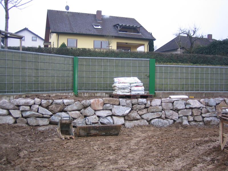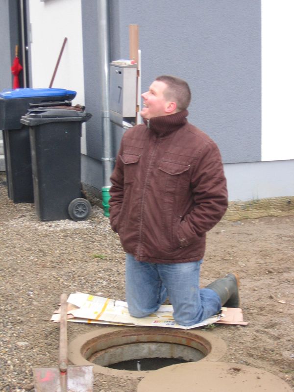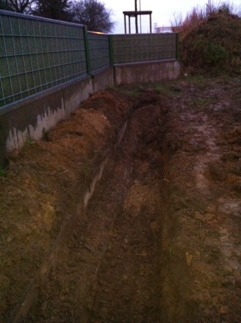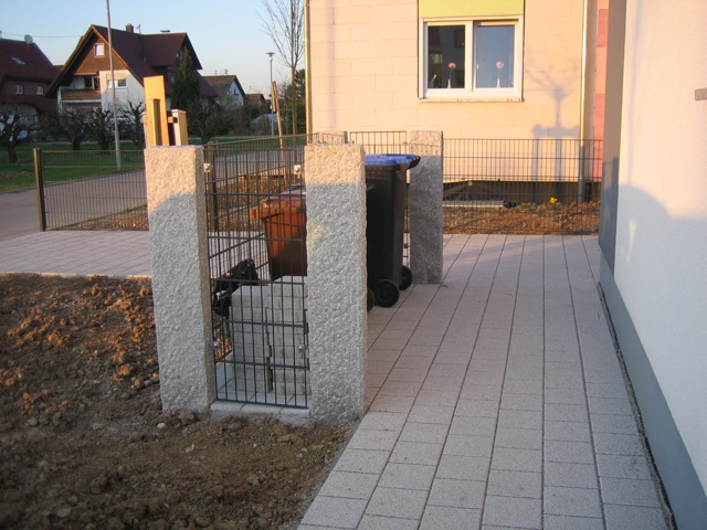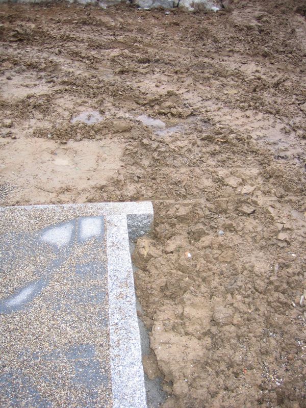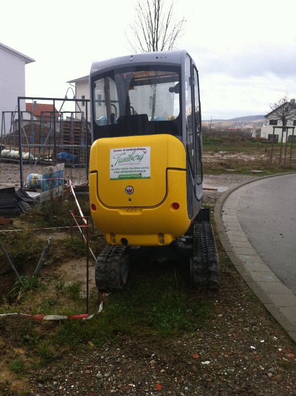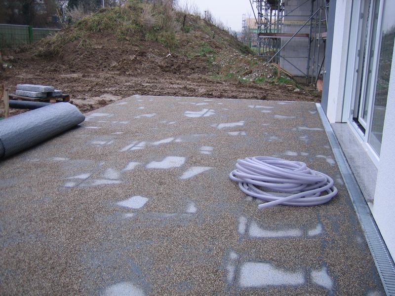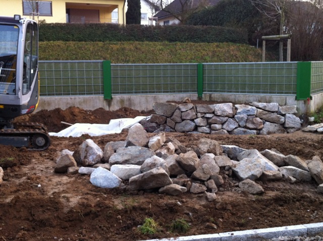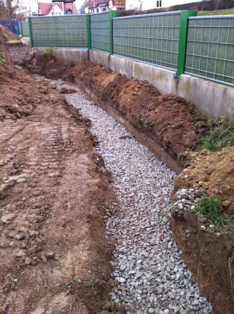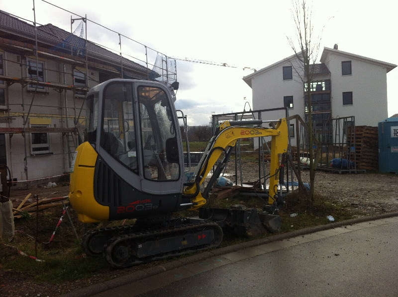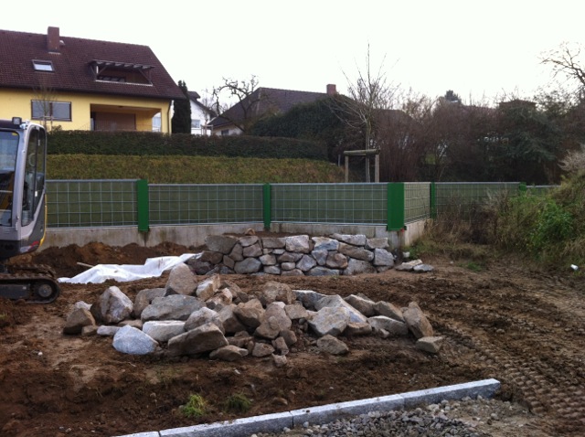 Also wird es Zeit, die alten Pläne, die bereits bei der Hausplanung gemacht wurden, in die Tat umzusetzen. Das notwendige Material wird berechnet und kalkuliert, Baumärkte besucht und Beratungen eingeholt und schließlich wird noch überlegt, was denn nun genau gemacht werden soll und wie. Bei den Arbeiten des GaLa-Bauers wurde bereits der Unterbau vorbereitet, sodass nun das seit Jahren rumliegende Unkrautvlies zu seinem Einsatz kommen sollte. Obendrauf etwas Split, den netterweise ein Kollege von mir kurz vor seinem Urlaub geholt hat. Aber wenn man so im Kieswerk steht, verschätzt man sich mit den Dimensionen etwas… Nach meiner Rechnung hätten 0,4 Kubikmeter Splitt gereicht, die Schaufel des Radladers war vielleicht zu einem Fünftel gefüllt und auf der Waage haben wir dann erfahren, dass 900kg Splitt (8/11er) für stolze 13 Euro den Besitzer wechseln.