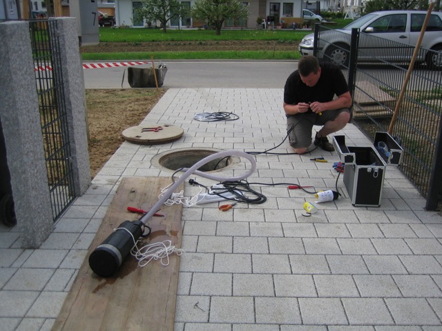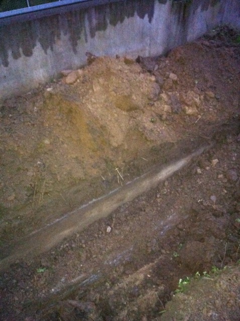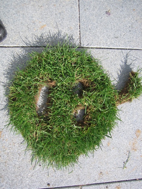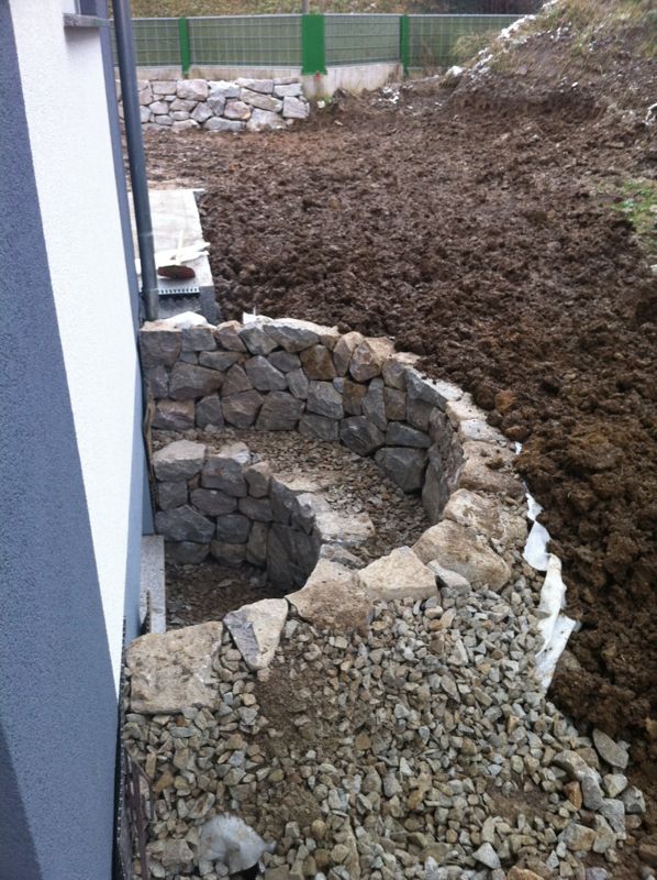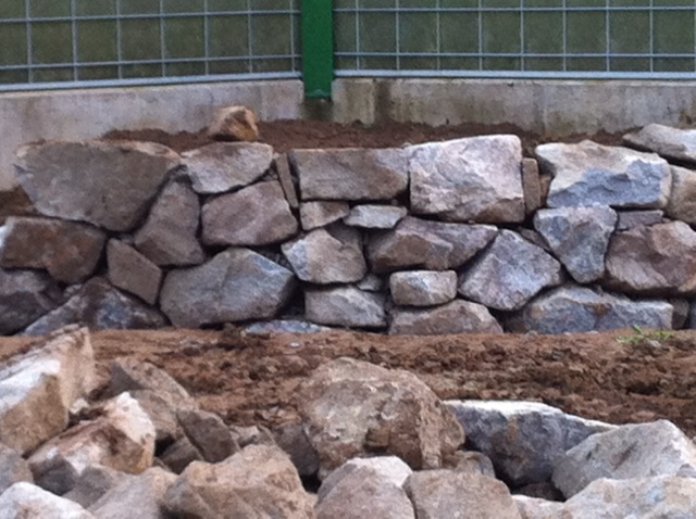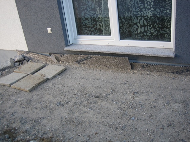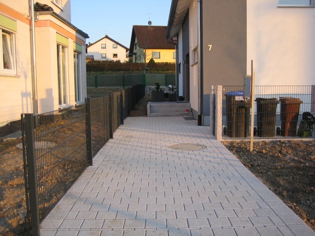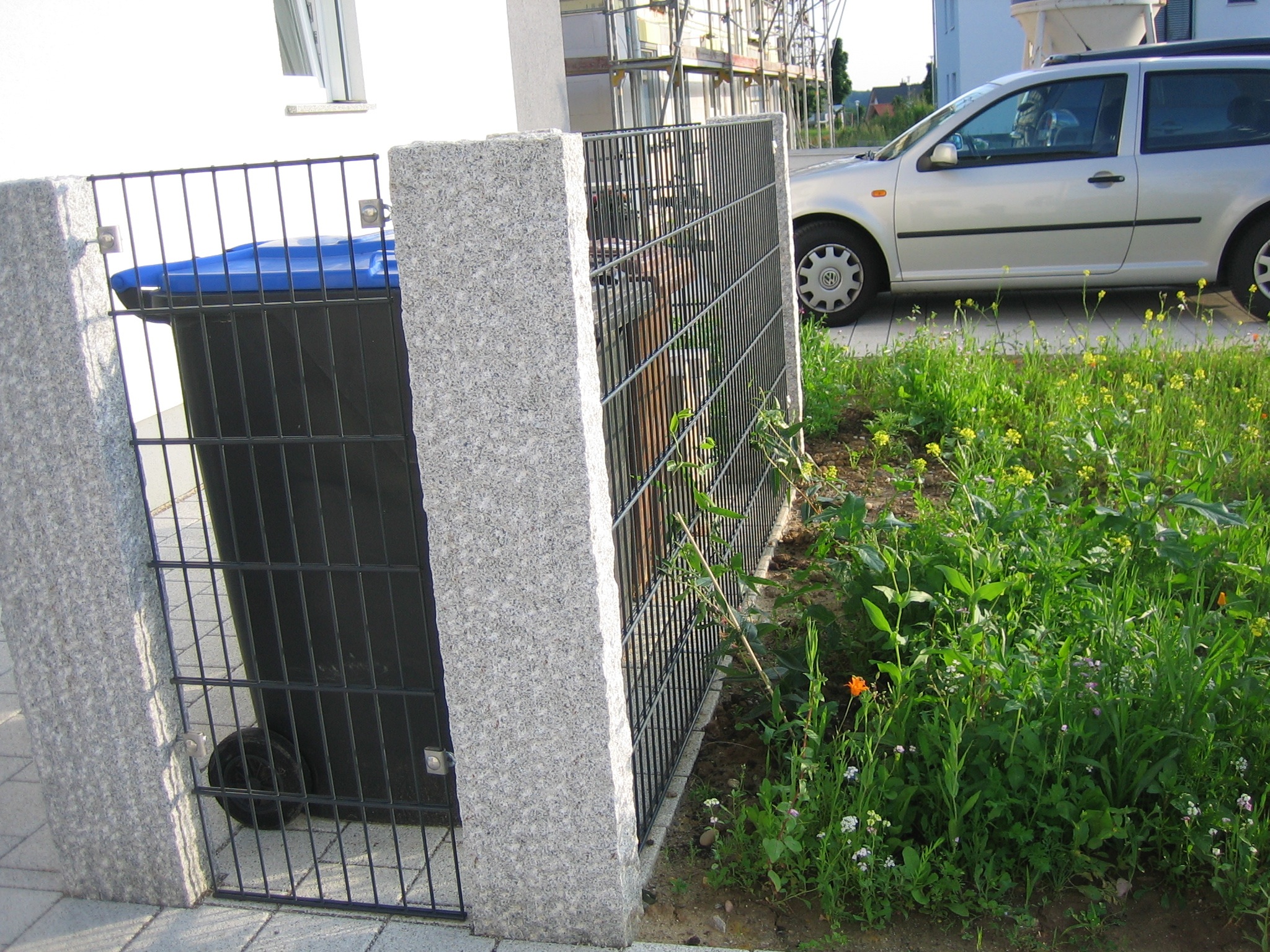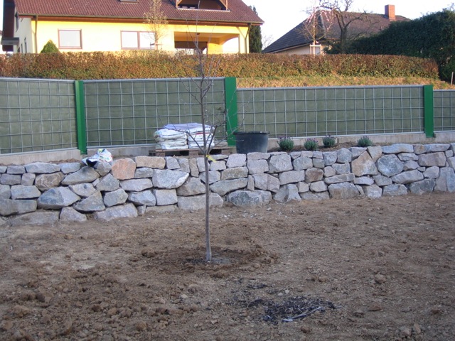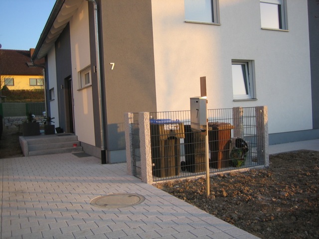 Also wird es Zeit, die alten Pläne, die bereits bei der Hausplanung gemacht wurden, in die Tat umzusetzen. Das notwendige Material wird berechnet und kalkuliert, Baumärkte besucht und Beratungen eingeholt und schließlich wird noch überlegt, was denn nun genau gemacht werden soll und wie. Bei den Arbeiten des GaLa-Bauers wurde bereits der Unterbau vorbereitet, sodass nun das seit Jahren rumliegende Unkrautvlies zu seinem Einsatz kommen sollte. Obendrauf etwas Split, den netterweise ein Kollege von mir kurz vor seinem Urlaub geholt hat. Aber wenn man so im Kieswerk steht, verschätzt man sich mit den Dimensionen etwas… Nach meiner Rechnung hätten 0,4 Kubikmeter Splitt gereicht, die Schaufel des Radladers war vielleicht zu einem Fünftel gefüllt und auf der Waage haben wir dann erfahren, dass 900kg Splitt (8/11er) für stolze 13 Euro den Besitzer wechseln.