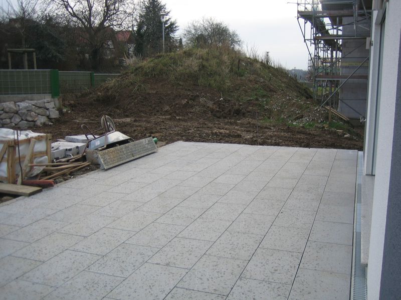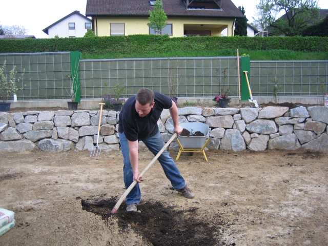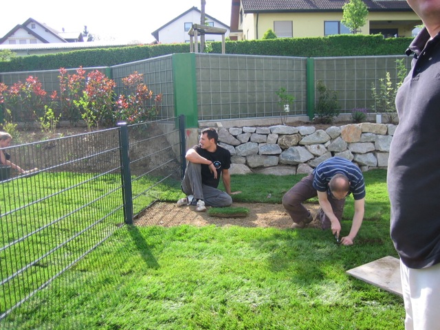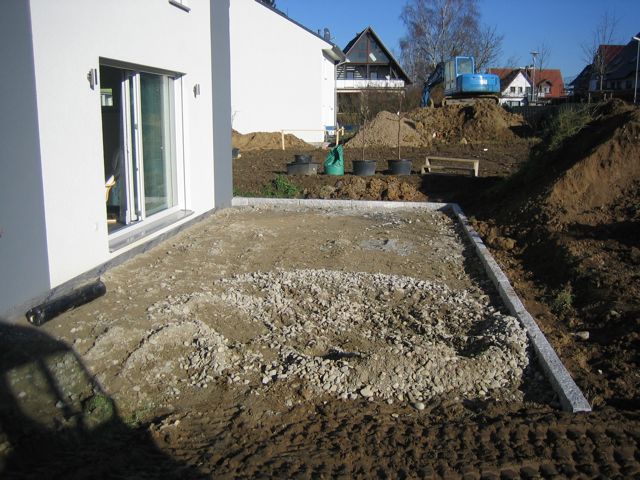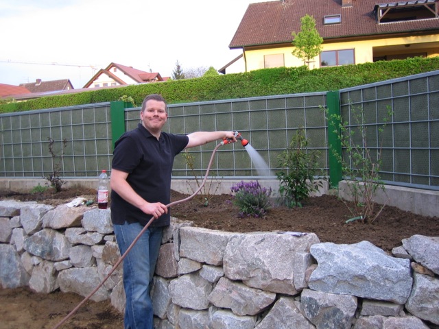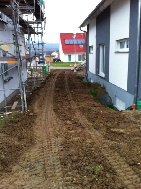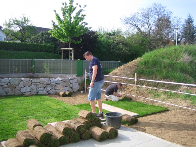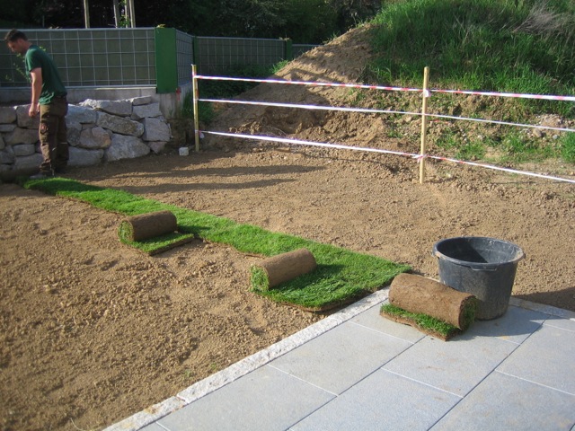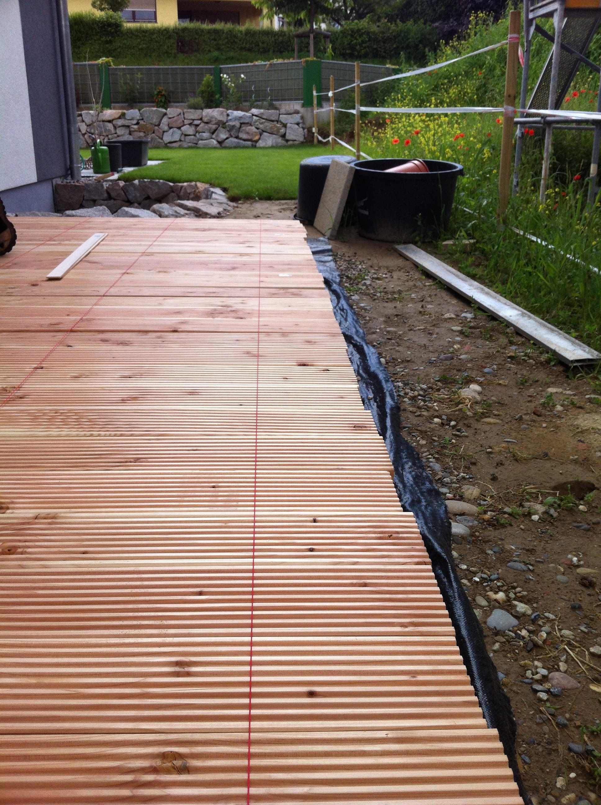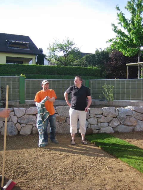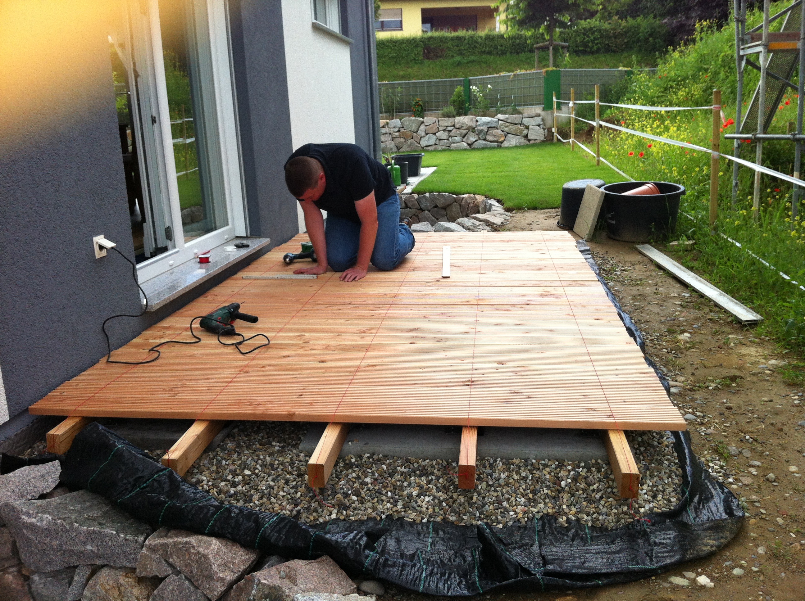 Nachdem der Rasen liegt, gewässert, gemäht und auch schon gedüngt wurde, ist es an der Zeit gewesen, ein weiteres Projekt in Angriff zu nehmen: Vor die zweite Terrassentür soll ein Holzdeck entstehen, die gemütliche Ecke für das Glas Rotwein am Abend soll es werden…