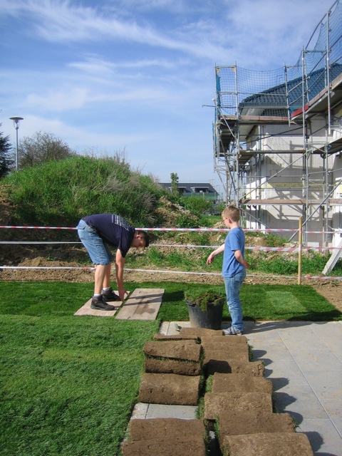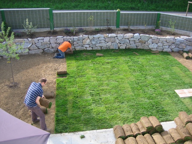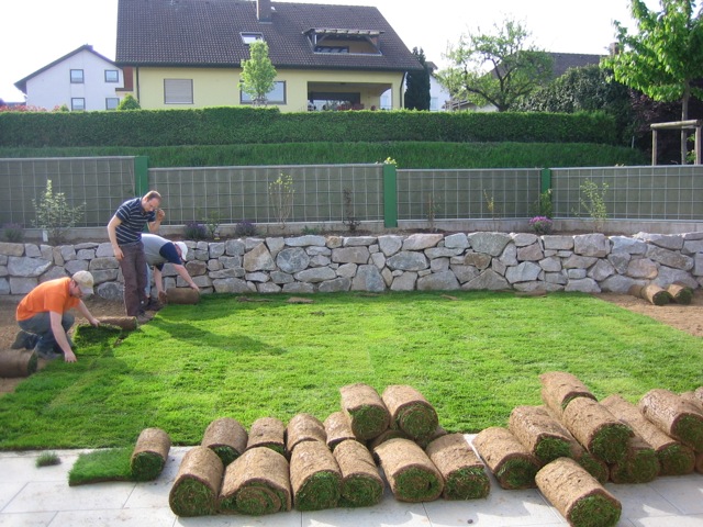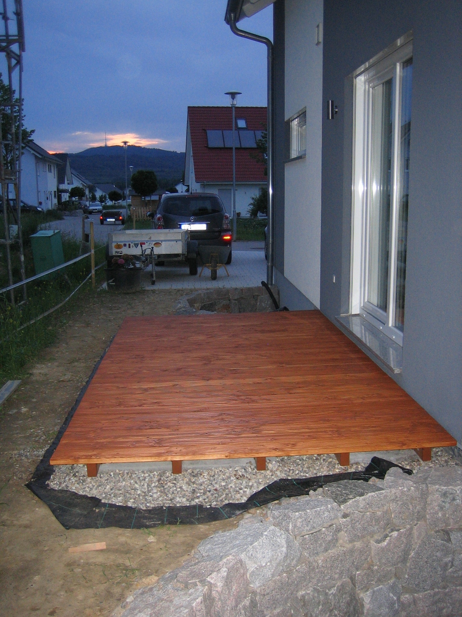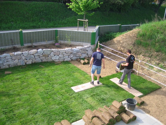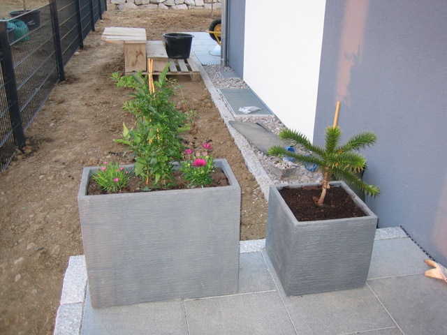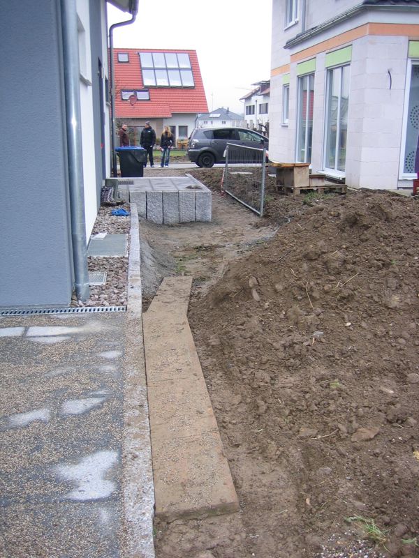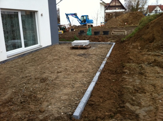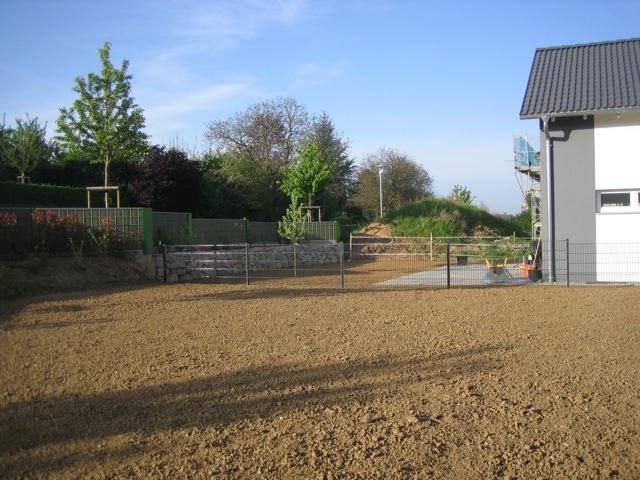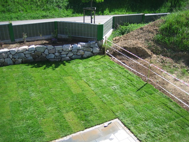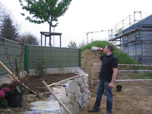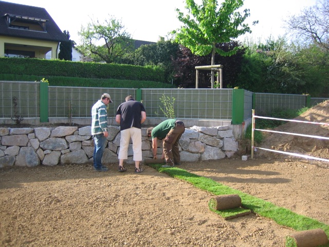 Nachdem der Rasen liegt, gewässert, gemäht und auch schon gedüngt wurde, ist es an der Zeit gewesen, ein weiteres Projekt in Angriff zu nehmen: Vor die zweite Terrassentür soll ein Holzdeck entstehen, die gemütliche Ecke für das Glas Rotwein am Abend soll es werden…