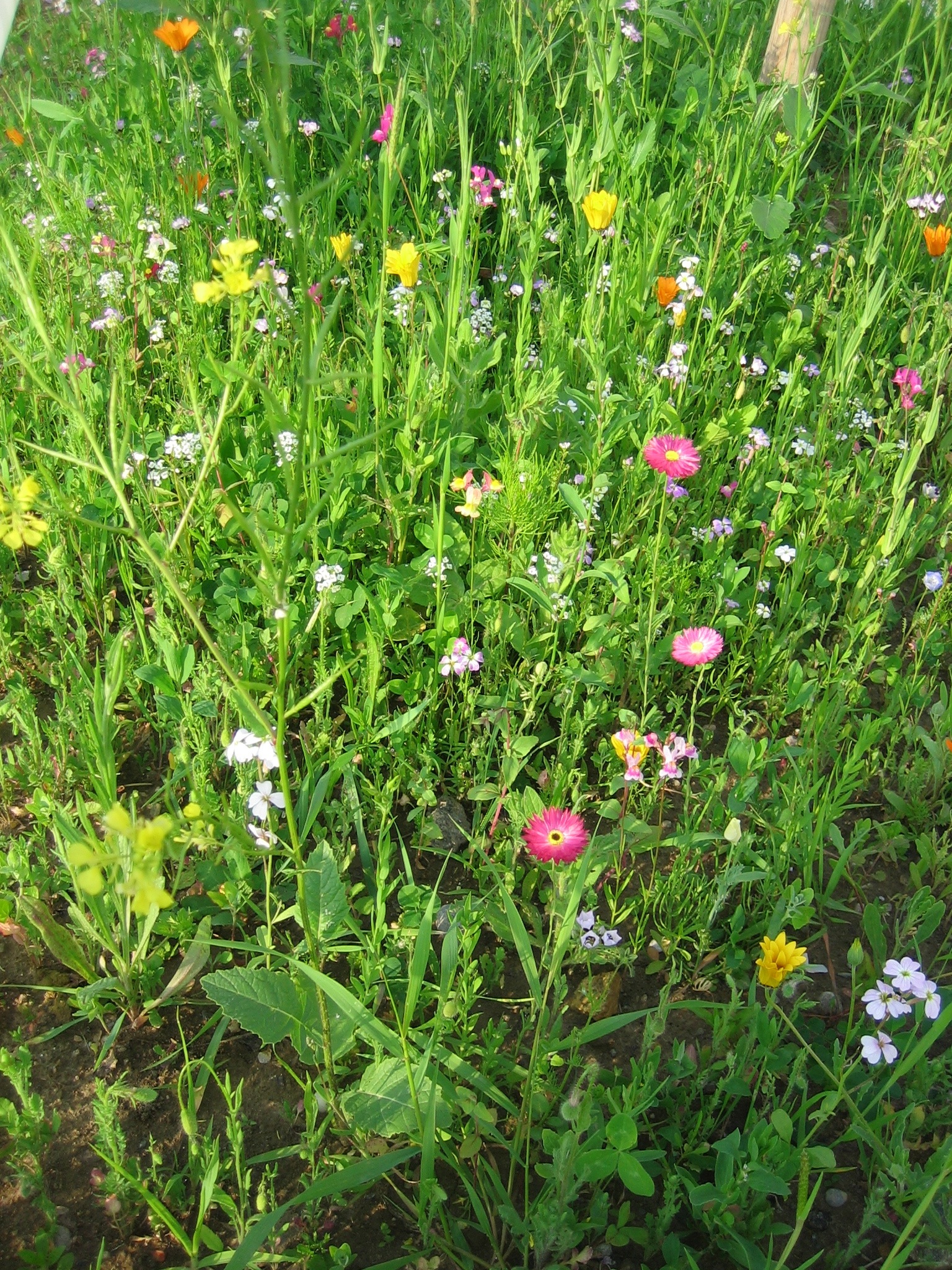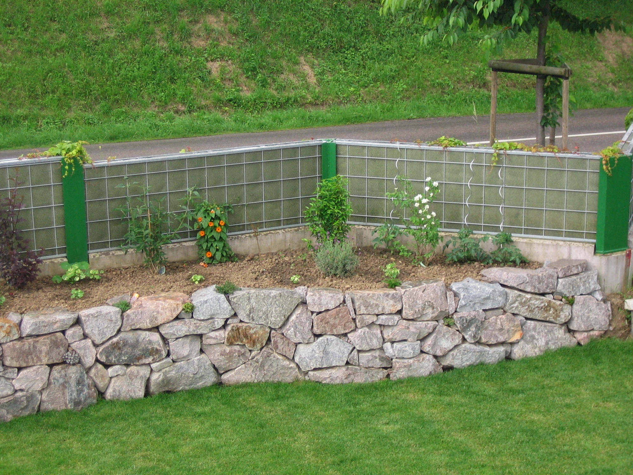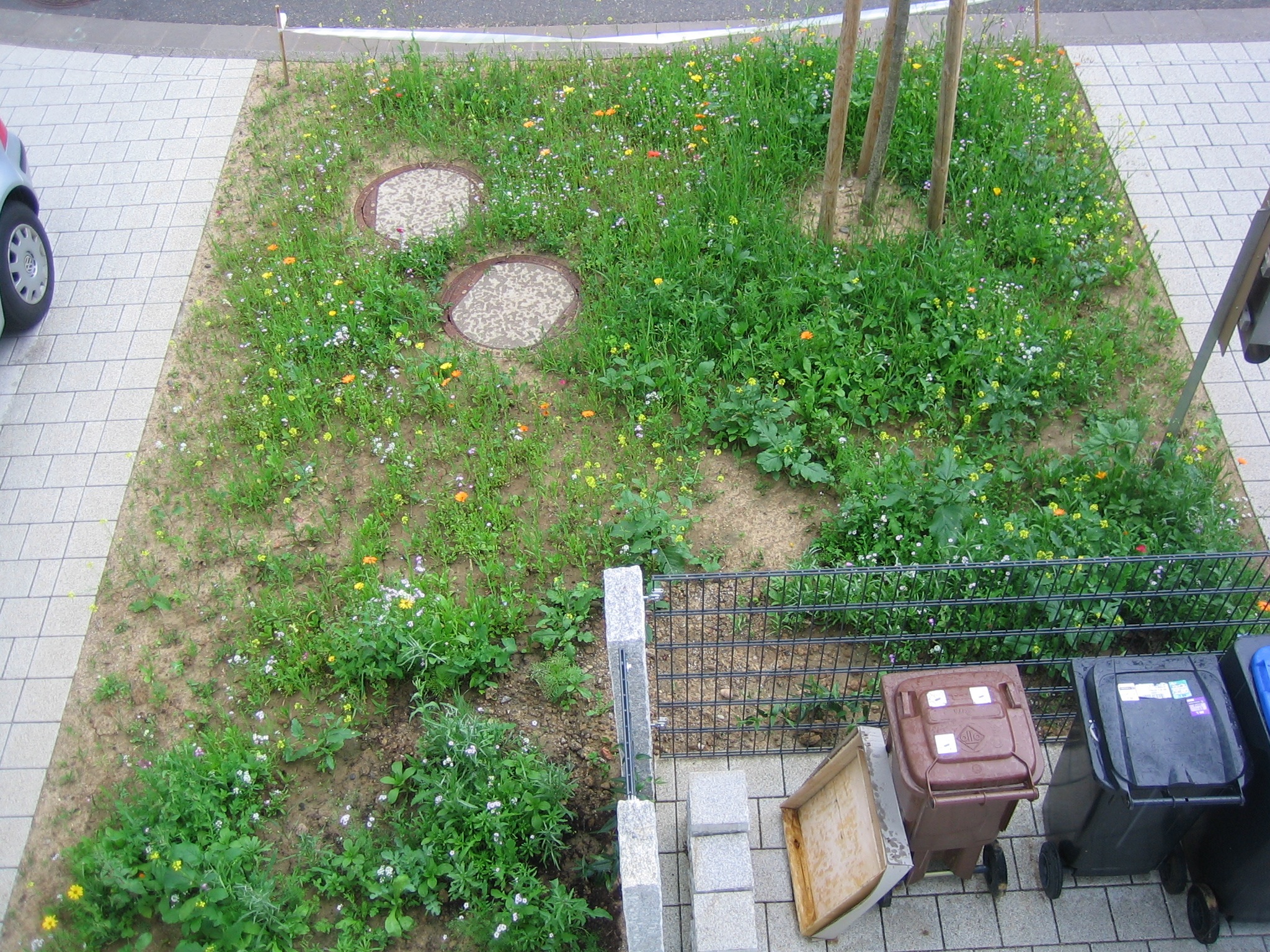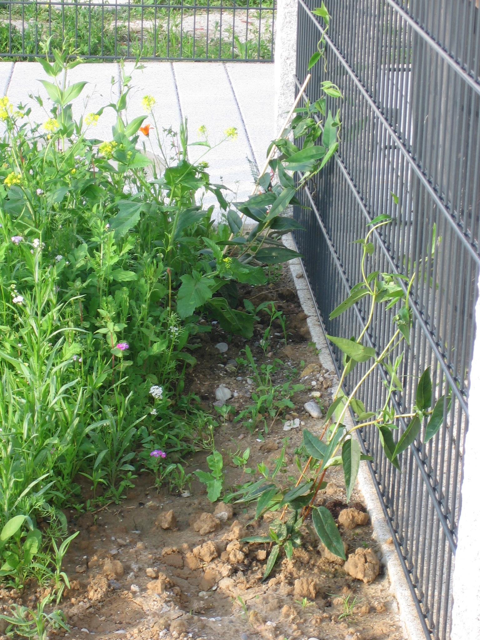 Auch das Grün ums Haus wächst und gedeiht: Die Kapuzinerkresse habe ich etwas auseinander gesetzt, hoffentlich überlebt sie das auch, die ersten Ergebnisse waren nicht sehr erfolgsverprechend… Aber abwarten, mal schauen, was draus wird. Das „Unkraut“ aus dem Vorgarten blüht nun so langsam auf und sieht doch viel bunter und einladender aus. Es wird also…